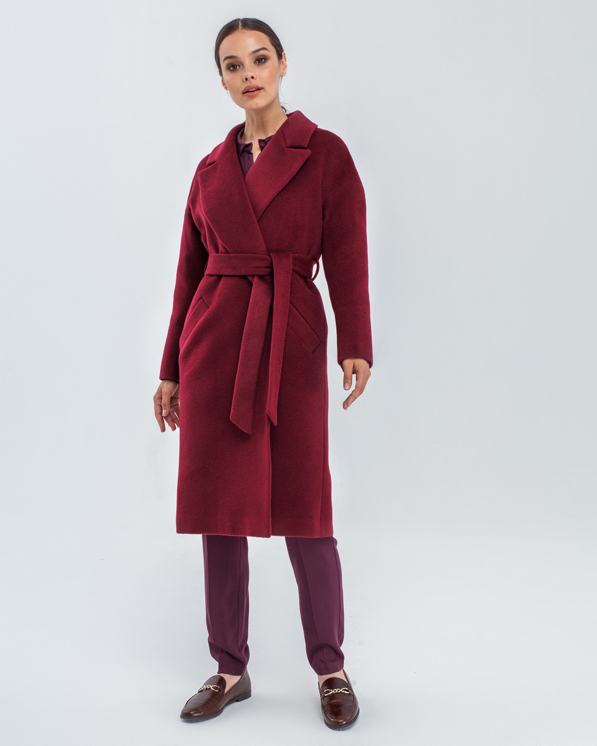 This straight-fit robe coat is made of dense wool and features an english collar. Two spacious pockets and a belt finish off the design.