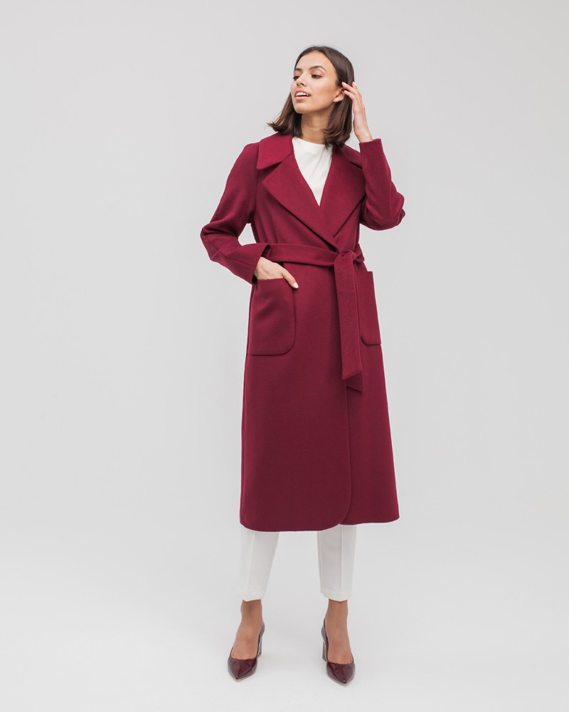 This staright-fit robe coat is made of a dense wool and cashmere blend fabric. It features an english collar and reglan sleeves. Two spacious patch pockets without hardware, a soft belt made of the same fabric.
