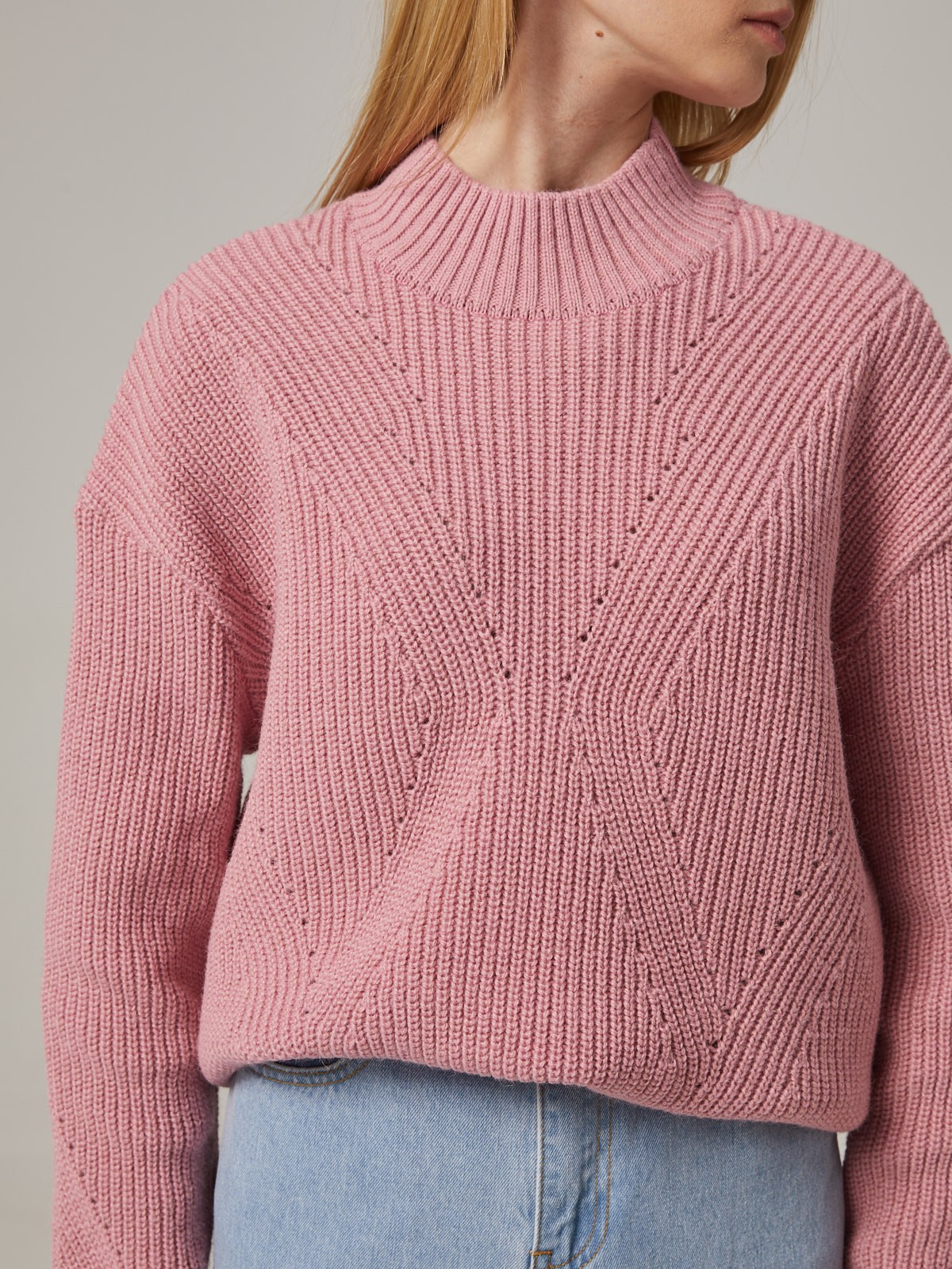 A snuggly warm sweater with alpaca wool inclusion that makes it soft to the touch and excludes itchiness. It features a chunky knit at the front. Style it with denim jeans or with business-appropriate separates.