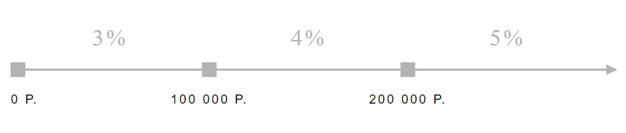 - За каждую покупку с идентификацией по номеру телефона начисляются бонусы в размере от 3% до 5% на сумму чека. Процент начислений зависит от общей суммы всех прежних покупок: