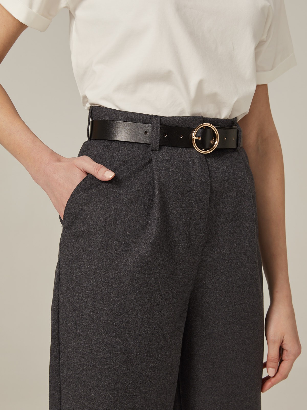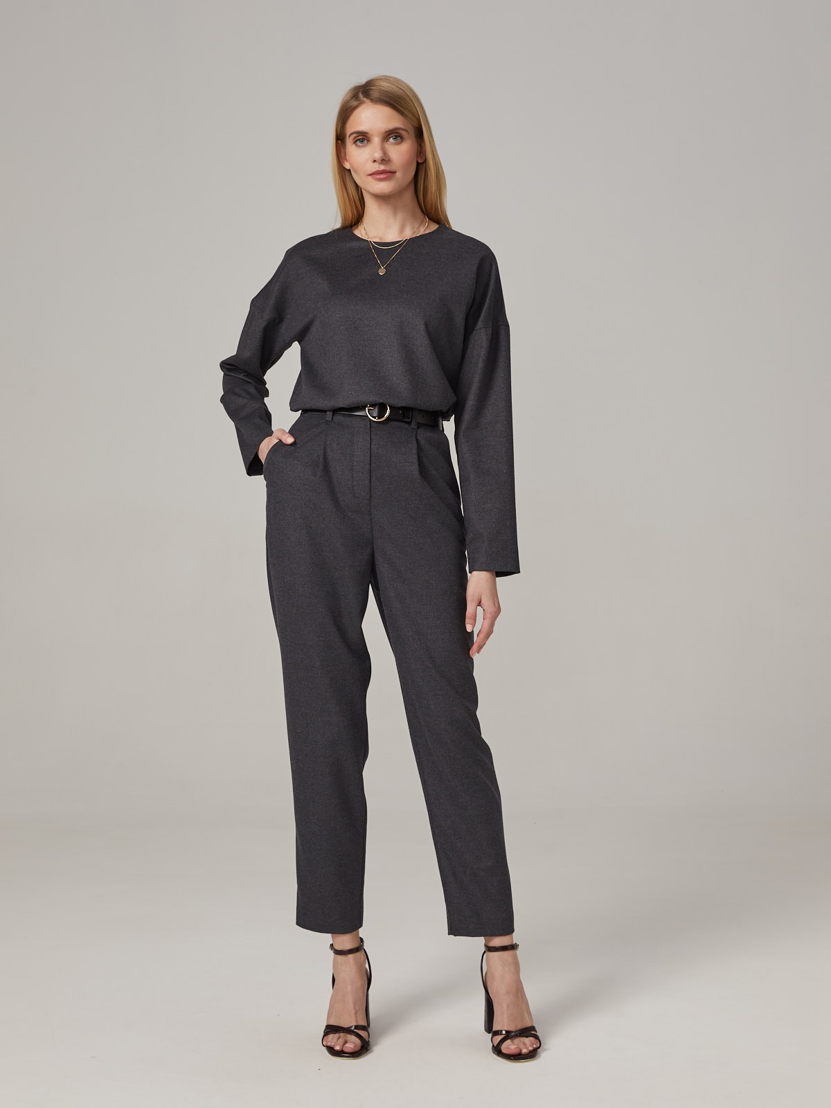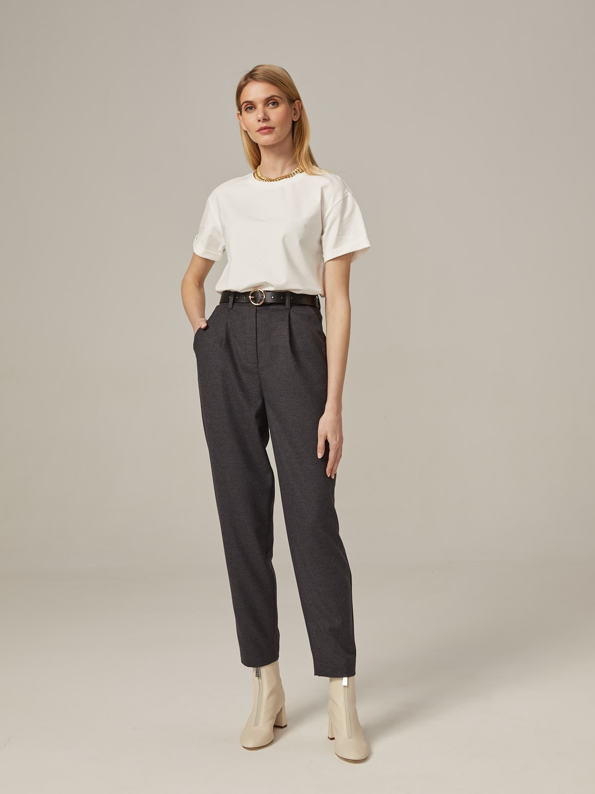 Брюки-'бананы' зауженные к низу. Модель дополнена защипами спереди и съемным ремнем. Завершите расслабленный образ cвитшотом, футбoлкoй или cвитерoм oversize.