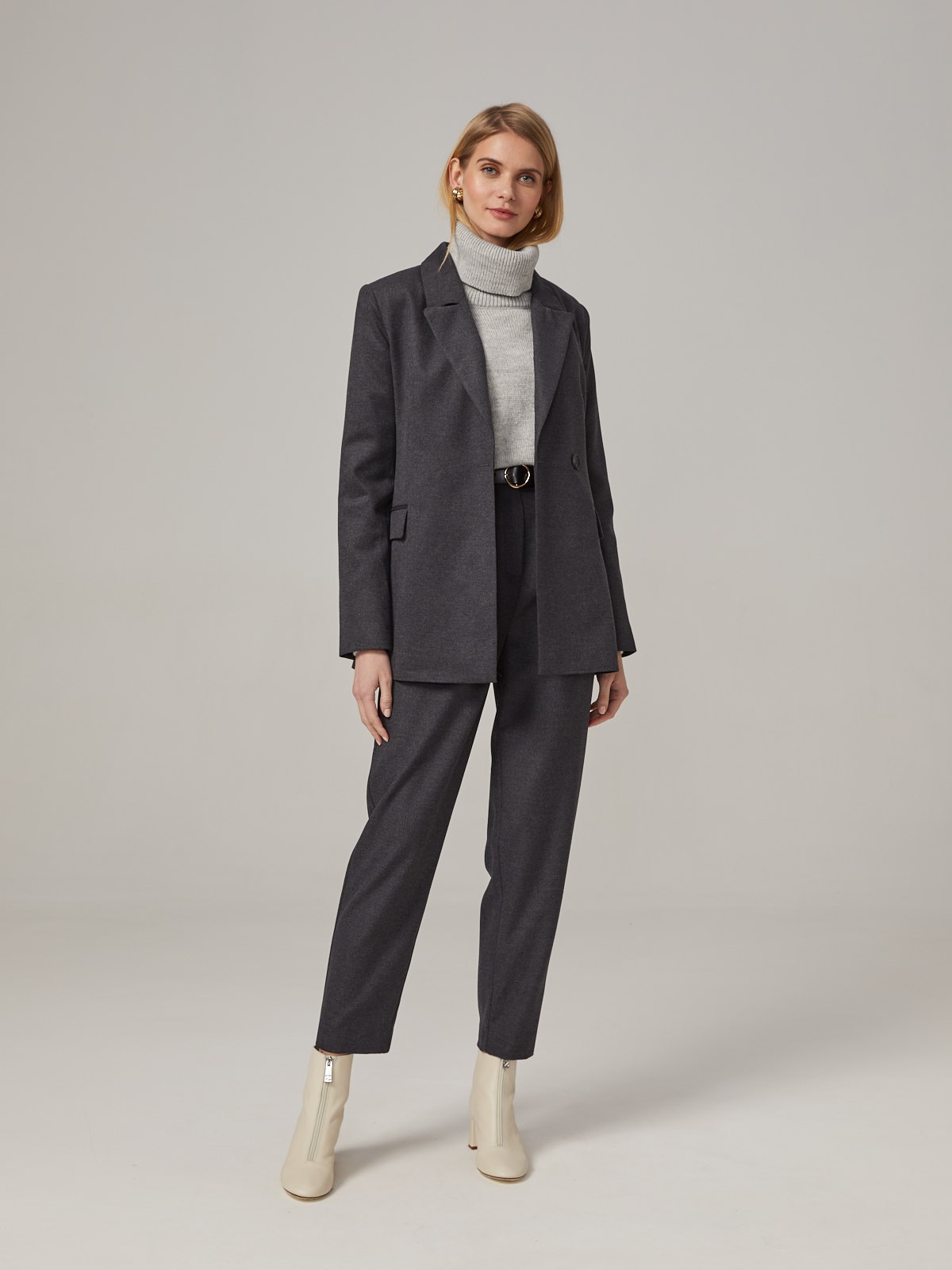 55% шерсть, 35% вискоза, 8% полиэстер, 2% эластан, Подкладочная ткань: 60% вискоза, 35% полиэстер, 5% спандекс