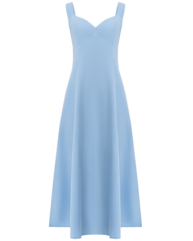 Платье на широких бретелях из вискозы "купро" с эффектом мокрого шёлка отлично впишется и в дневной, и в вечерний образ благодаря классическому минималистичному силуэту и точному крою, подчеркивающему достоинства фигуры. Смело сочетайте его с жакетами, объемными куртками, в качестве обуви - сандалии, кеды, мюли, бабуши.